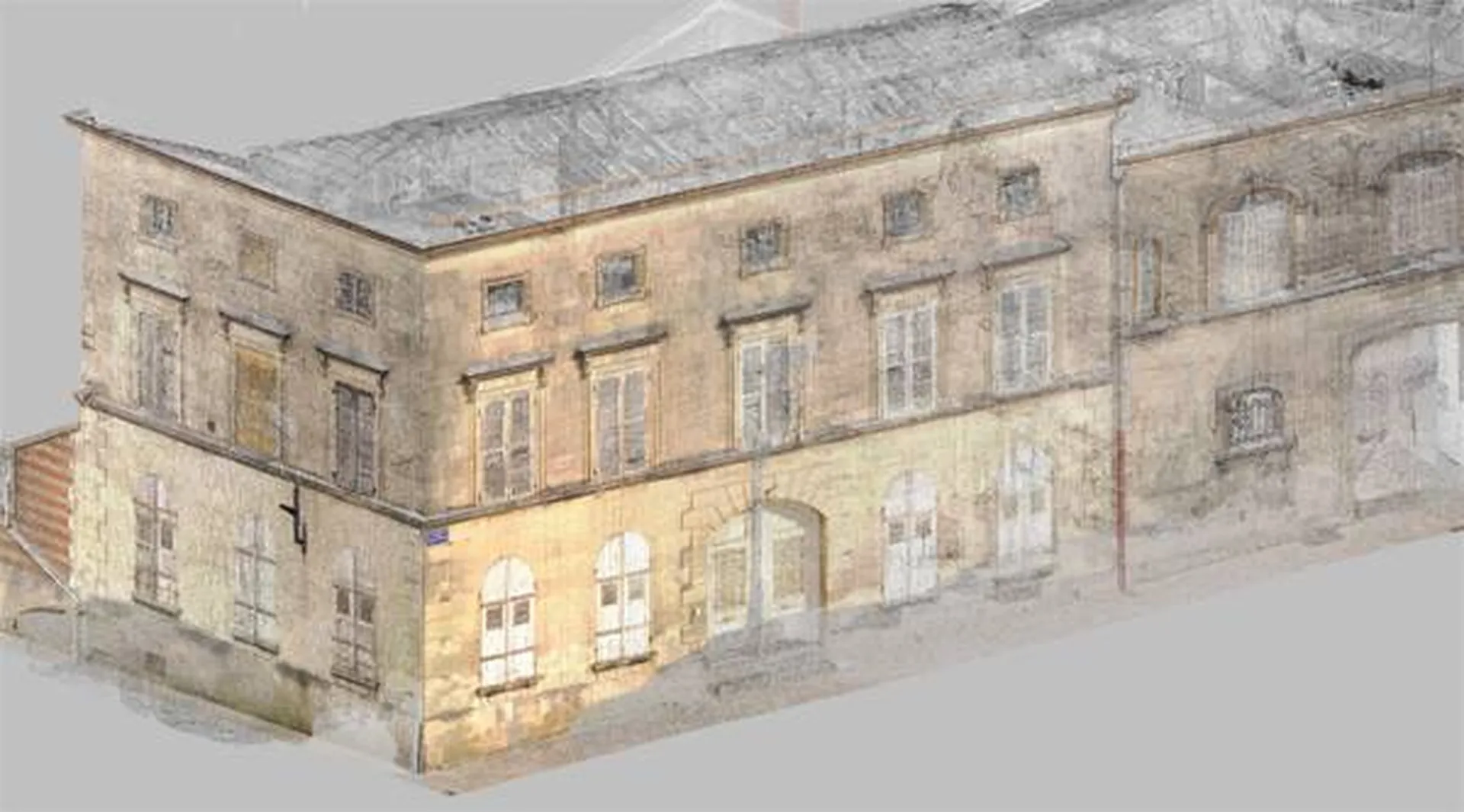 A partir du nuage de points brut, nous pouvons réaliser la maquette numérique 3D des bâtiments. Dessinée sous REVIT en 3 dimensions, elles permettent une visualisation parfaite du bâti avec un niveau de détail à déterminer.